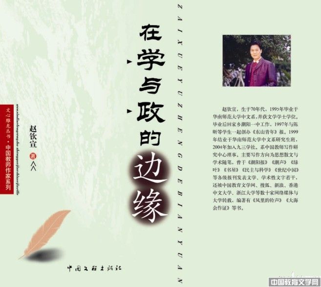 本書(shū)第二、三輯“時(shí)政雜談”“人在家園”里的文章也很值得注意。作者將他的文集命名為《在學(xué)與政的邊緣》就是意在指明他在徜徉于學(xué)海的同時(shí),也在關(guān)心政治。我理解他所說(shuō)的“政治”,是孫中山先生所說(shuō)的“眾人之事”;強(qiáng)調(diào)“邊緣”也是表明是站在民間立場(chǎng)上關(guān)心眾人之事。這其實(shí)就是在行使公民的權(quán)利,盡公民的社會(huì)責(zé)任。這背后也有個(gè)教育理念問(wèn)題:中學(xué)生是未來(lái)的或已然的公民,公民教育應(yīng)是中學(xué)教育的重要內(nèi)容,而教師的榜樣作用也許是更為關(guān)鍵的。要做一個(gè)好的教師,首先要做一個(gè)好公民。從這個(gè)意義上,看趙欽宣老師如何談?wù)?ldquo;我心目中的知識(shí)分子”,追問(wèn)“‘群體性事件’的背后是什么訴求”,痛說(shuō)“大學(xué)教育使人民貧困”,呼吁“警惕代際貧困”,就不難感覺(jué)到,其所顯示的社會(huì)責(zé)任,人文關(guān)懷,底層情結(jié),批判意識(shí),獨(dú)立的理性思考,其實(shí)都是教師應(yīng)有的品格與素質(zhì)。