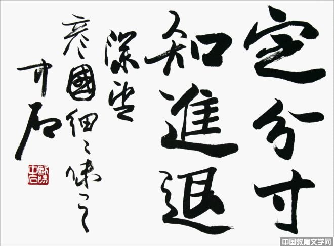 1993年,國家為了使書法教育更加走向正規(guī)、深入,更加蓬勃發(fā)展,在首都師范大學設立了美術學(書法教育)博士點。1997年他為中央財經大學題寫校名。1998年,國家人事部又在首都師范大學設立書法博士后教學點,使首都師范大學成為我國高校第一所從博士后、博士、碩士到本科、大專完整的中國書法教育體系。2005年,他為山東政法學院題寫校訓。歐陽中石投入積極深入的思考之中,更加努力地為中國書法教育做著貢獻,不僅彌補了很久以來中國書法教育的不足,培養(yǎng)了一大批中國書法教育的高級專門人才,而且為中國文化教育事業(yè)的全面發(fā)展做出了重要貢獻,為中國書法史寫下了光輝的一頁。
