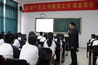 師:老師是來自北京師范大學的在讀教育學博士,姓李,名前尚。相見是一份緣,相識是一首歌,很榮幸和杭州市蕭山十中高二(15)班的孩子相聚在這里。今天能和同學們一起探討文學課堂,感到高興。再過一年多同學們可以報考北京師范大學,我們就可以成為校友了。(學生自發(fā)掌聲)讓我們也把掌聲獻給全國各地的老師們,也把掌聲獻給自己。