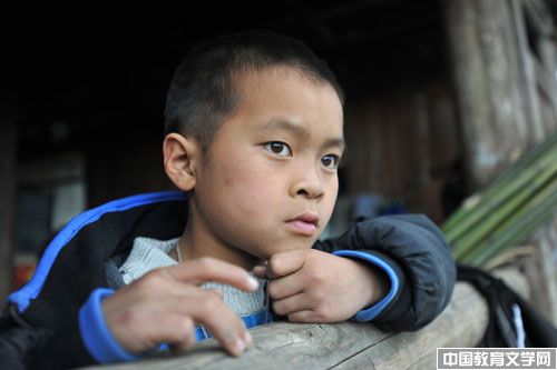 5月21日,廣西龍勝各族自治縣馬堤鄉(xiāng)東升村兒童陽詹易思念遠(yuǎn)在廣東務(wù)工的爸爸。新華社發(fā)