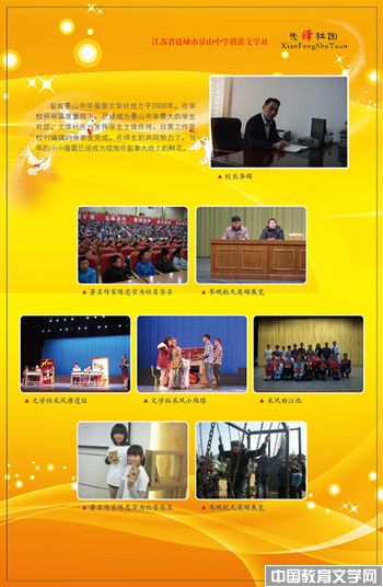 鹽城市景山中學(xué)蓓蕾文學(xué)社成立于2008年。經(jīng)歷許多風(fēng)風(fēng)雨雨,蓓蕾文學(xué)社在景山人的細(xì)心呵護(hù)下,已經(jīng)成為鹽城校園文學(xué)社團(tuán)中一顆冉冉升起的璀璨新星。